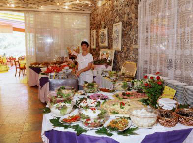 Хотелът се състои от 6 сектора сред паркова зеленина и цветя. На разположение на гостите е ресторант с лятна тераса, обменно бюро, магазини.